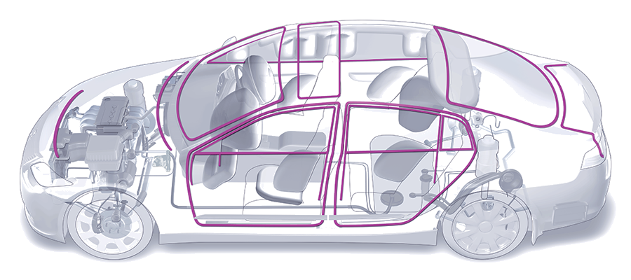 Tyto produkty, připojené ke dveřním a okenním rámům, chrání před deštěm, větrem a hlukem. Slouží také k řadě dalších důležitých rolí, jako je hladké otevírání a zavírání dveří či zvedání a spouštění oken. Toyoda Gosei se může pochlubit nejvyšším podílem na světovém trhu s těmito díly, které poskytují z 16 výrobních závodů po celém světě.